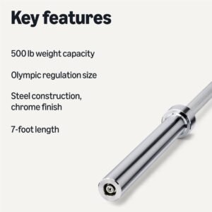 - 7-foot Olympic barbell bar for strength training workouts such as squats, deadlifts, bench presses, overhead presses, and more
