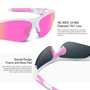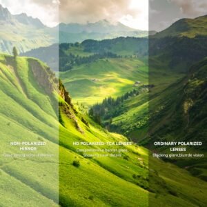 - COLORFUL HD POLARIZED 100% UV400 LENS: UV400 lens block 100% harmful UVA & UVB Rays. REVO colorful HD Polarized lens restore true color, with high-density Revo coating, keeping the original color, improve visual clarity and contrast effectively. Easier eliminate reflected and scattered light,make the scenery more clear and soft and protect eyes perfectly