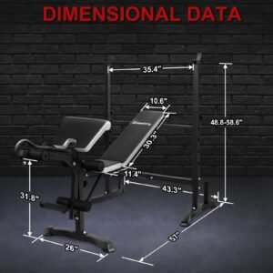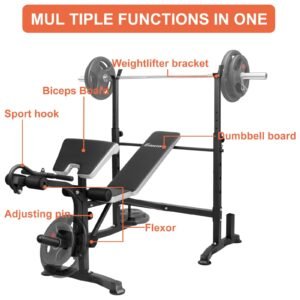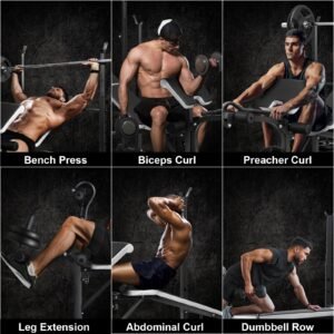 - Multi-Function: What you get is not only a weight bench, for versatile workouts including bench press, preacher curl, dumbbell bench press, leg extension, leg curl, abdominal crunch, chest expansion and so on. For beginners and intermediate weightlifters, the goal is to build strength and improve fitness at home.