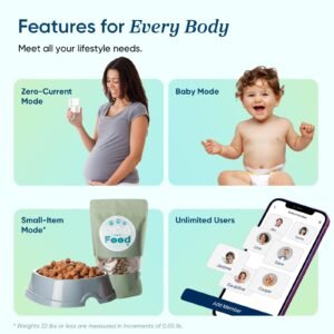 - 𝑽𝒆𝒓𝒔𝒂𝒕𝒊𝒍𝒆 𝑾𝒆𝒊𝒈𝒉𝒊𝒏𝒈 𝑺𝒐𝒍𝒖𝒕𝒊𝒐𝒏: Our scale offers 3 different modes designed to cater to all your needs. Zero-Current Mode ensures a safe weigh-in option, Baby Mode tracks baby or pet growth, and For Light Items weighs items as light as 100g