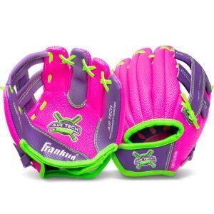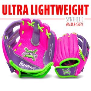 Details: Designed for the beginner player, Franklin’s new light weight Air Tech® Adapt Tee Ball Glove is engineered to fit all your child’s practice and game needs. This Air Tech® series features an ultra-light weight foam construction that is ready-to-play straight from the shelf and an easy self-stick adjustable wrist closure which makes it extremely easy to teach correct hand-positioning.