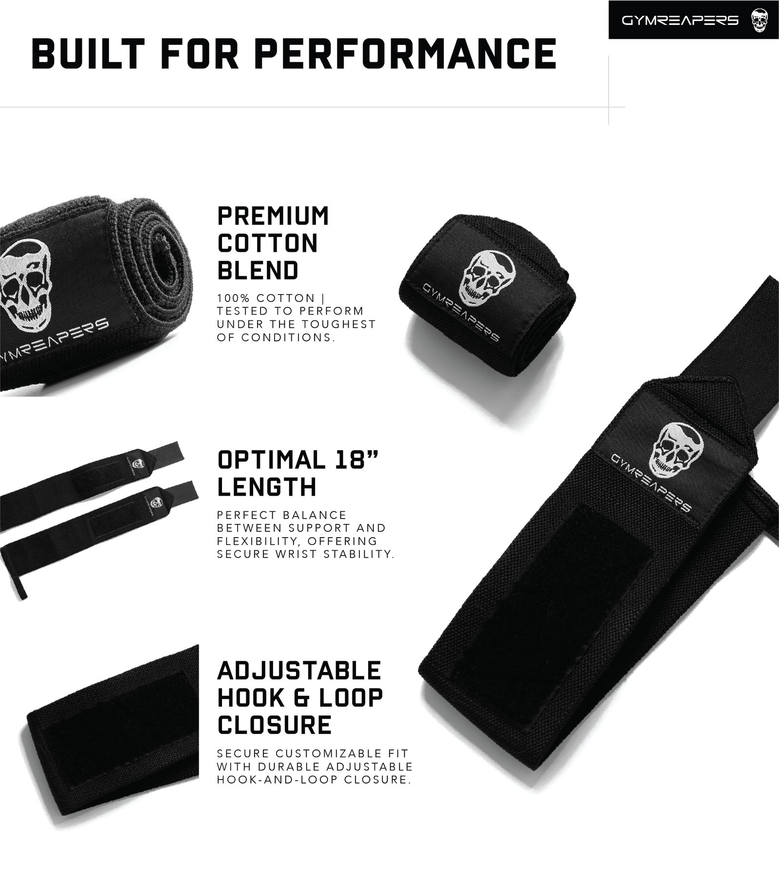 • TRUE TO SIZE 18″ LIFTING WRIST WRAPS – Unlike other poorly made wrist wraps on the market that are cheap and flimsy, Gymreapers wrist wraps are true to length. This means you can get the highest level of tightness and support compared to shorter wraps. However, the length is not too long and will be allowed in competition if you are looking for the best wrist wraps for squat, bench, and deadlift.