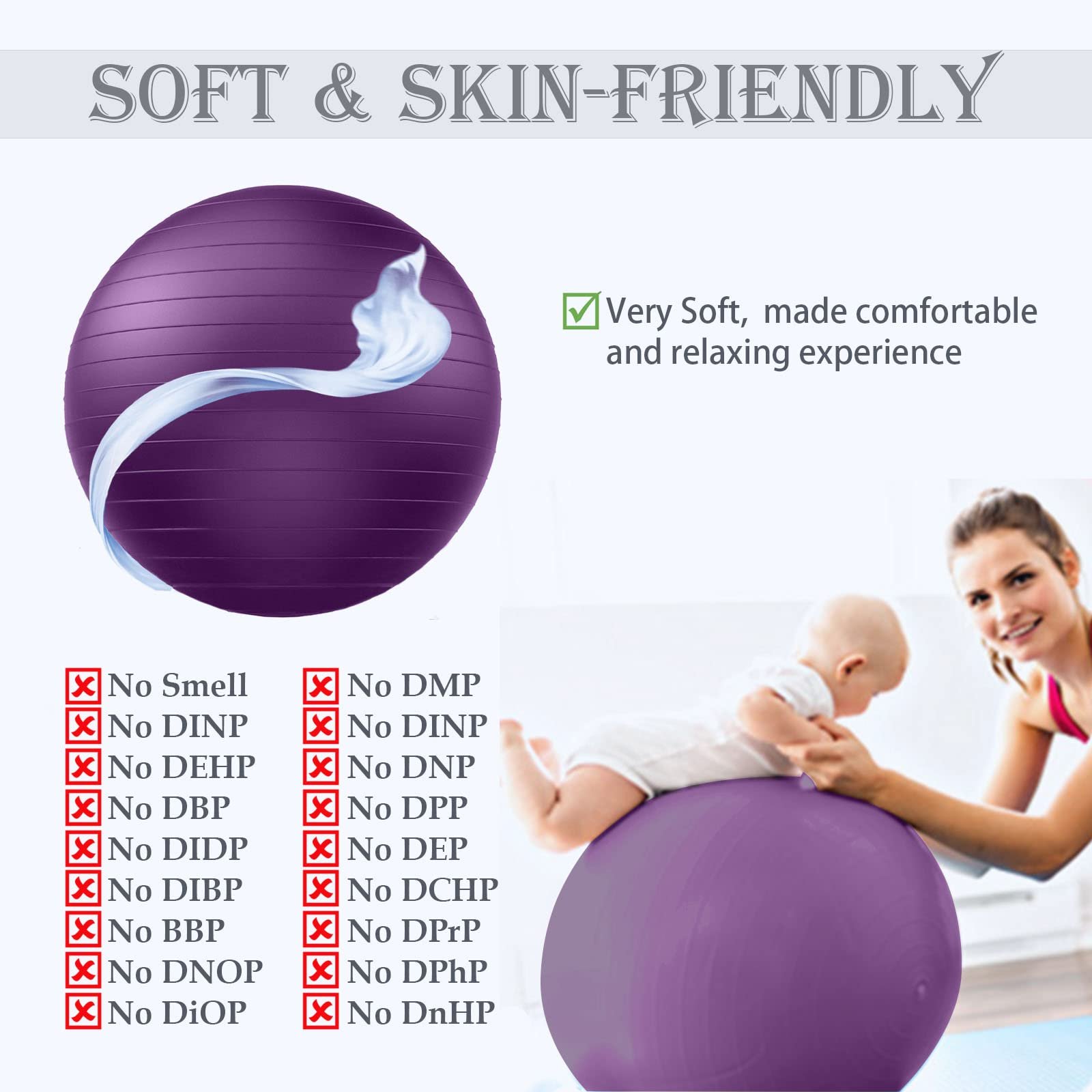 - [SOFT & SKIN-FRIENDLY] Goonidy swiss ball is very soft, bringing you a unique experience of comfort and relaxation. Safely certified by SGS, no smell and harmless, skin-friendly, can be used by children and pregnant women.