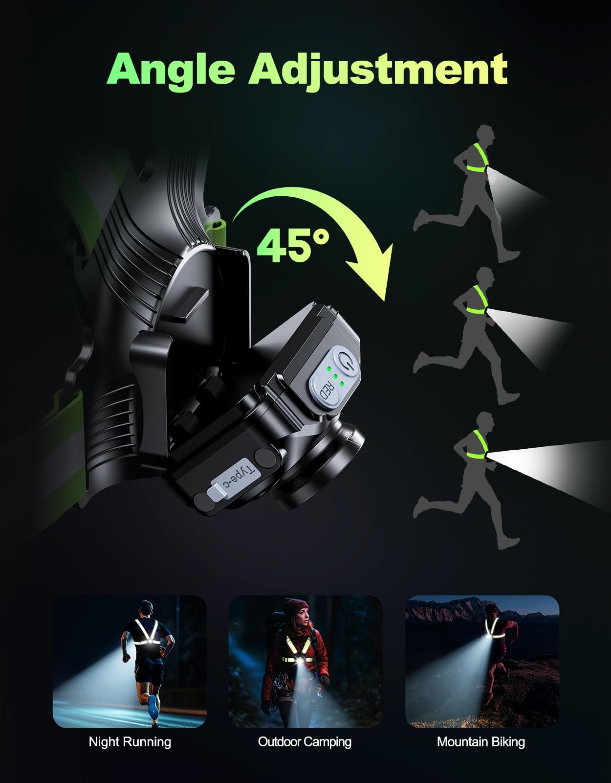 - 🔆【Ultra Bright & Adjustable Beam】Light your way with our 500-lumen LED running lights and its 45° adjustable beam. Illuminate paths up to 90 meters ahead, ensuring safety in the dark. Whether focusing on distant trails or nearby details, this running lights for runners guarantees safety for your nighttime outdoor activities!
