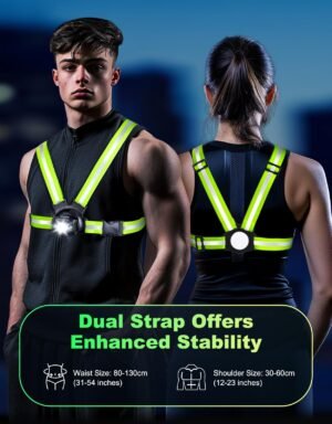 - 🏆【Adjustable & Dual-Strap Design】Our running light features a lightweight dual-strap design with adjustable waist and shoulder straps. Unlike most single-strap options, our symmetrical dual straps provide enhanced stability and comfort, ensuring a perfect fit for all body types. Enjoy your outdoor adventures with ease and confidence!