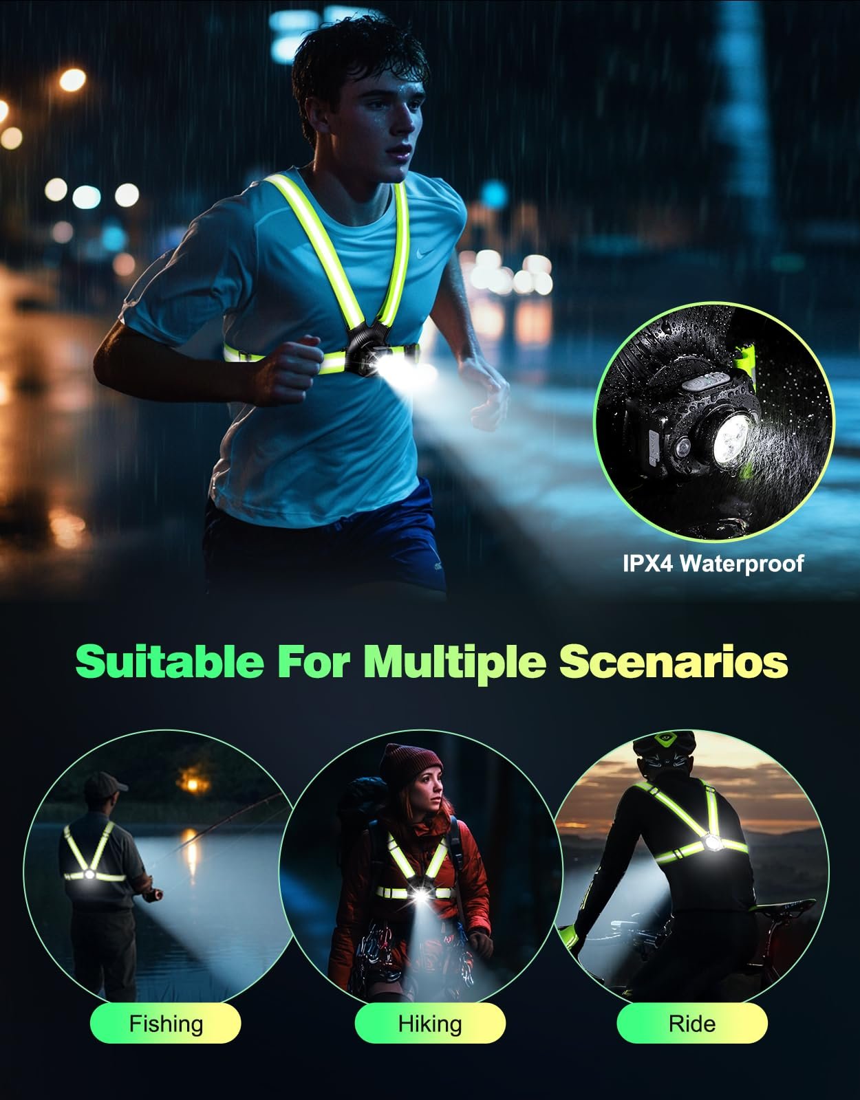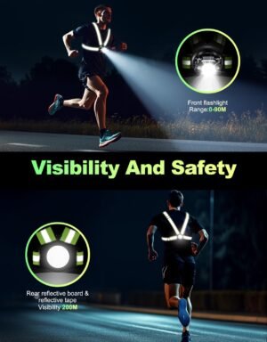 - 🏃【Ideal Night Running Companion】Stay visible from all angles with 360° reflective straps and a reflective warning design on the back. This safety night running gear enhances visibility up to 200 meters, making it ideal for nighttime runs, early morning jogs, and low-light activities. Enjoy your adventures worry-free—it’s also a great holiday gift option!