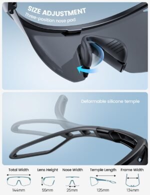 - 【Size Adjustment for Comfortable Fit】The nose pads are designed with three adjustable levels, you can freely adjust the height of the nose pads, the temples are designed with skin-friendly silicone, making it more comfortable to fit different facial shapes.