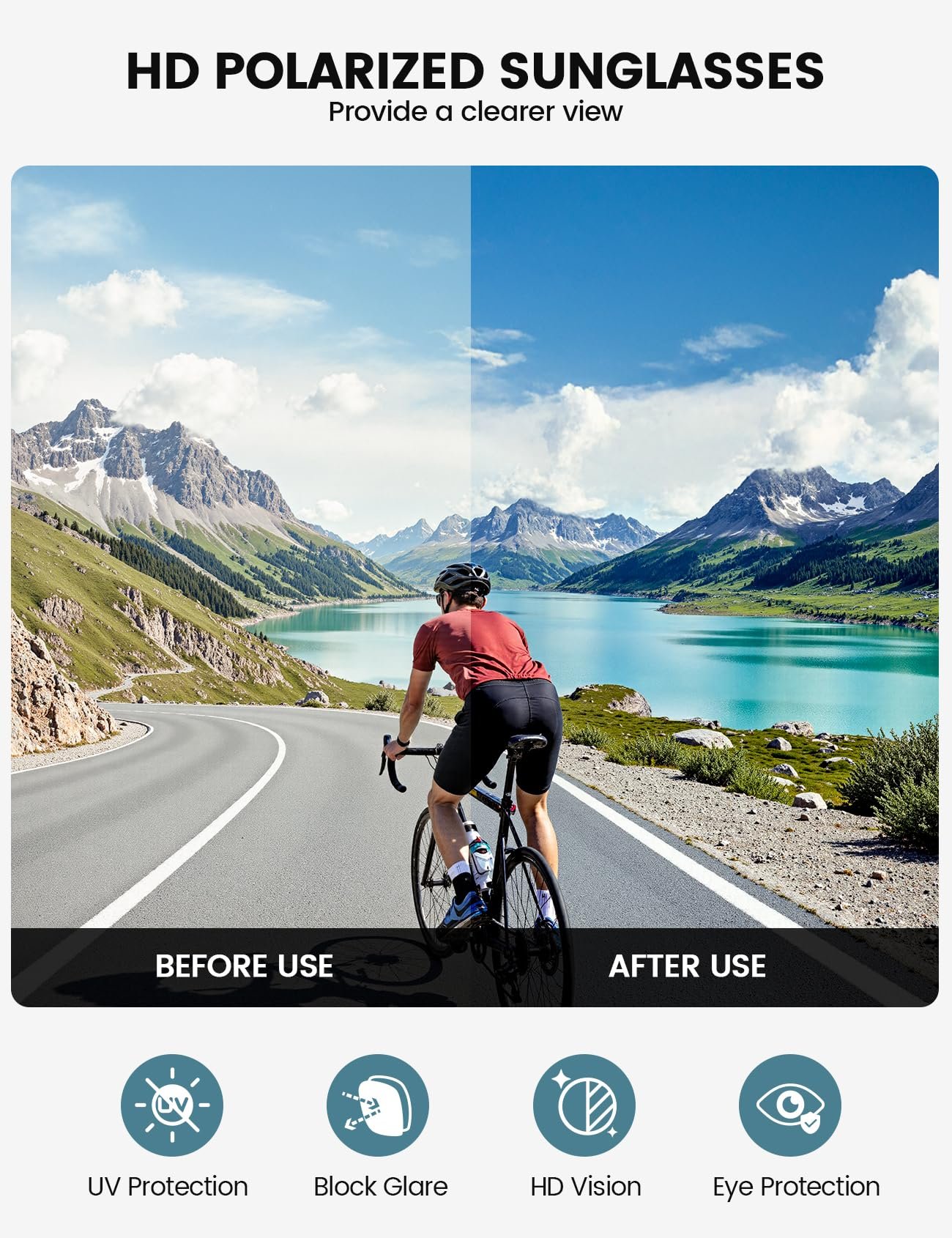 - 【TAC HD Polarized Lens – 99.9% UV400 Protection】Colorful HD polarized lenses block 99.9% of harmful UVA & UVB rays and effectively filter out astigmatism and stray light, restore true color and improve visual clarity and contrast, reduce reflected and scattered light, protect your eyes from sunlight damage.