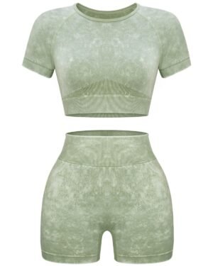 - Flattering Shorts And Crop Top: Ribbed texture at the waist and cuffs designed to stay in place when move. High-waist tummy control and butt lift, make it slim-fit, giving more support by shaping your body curves.