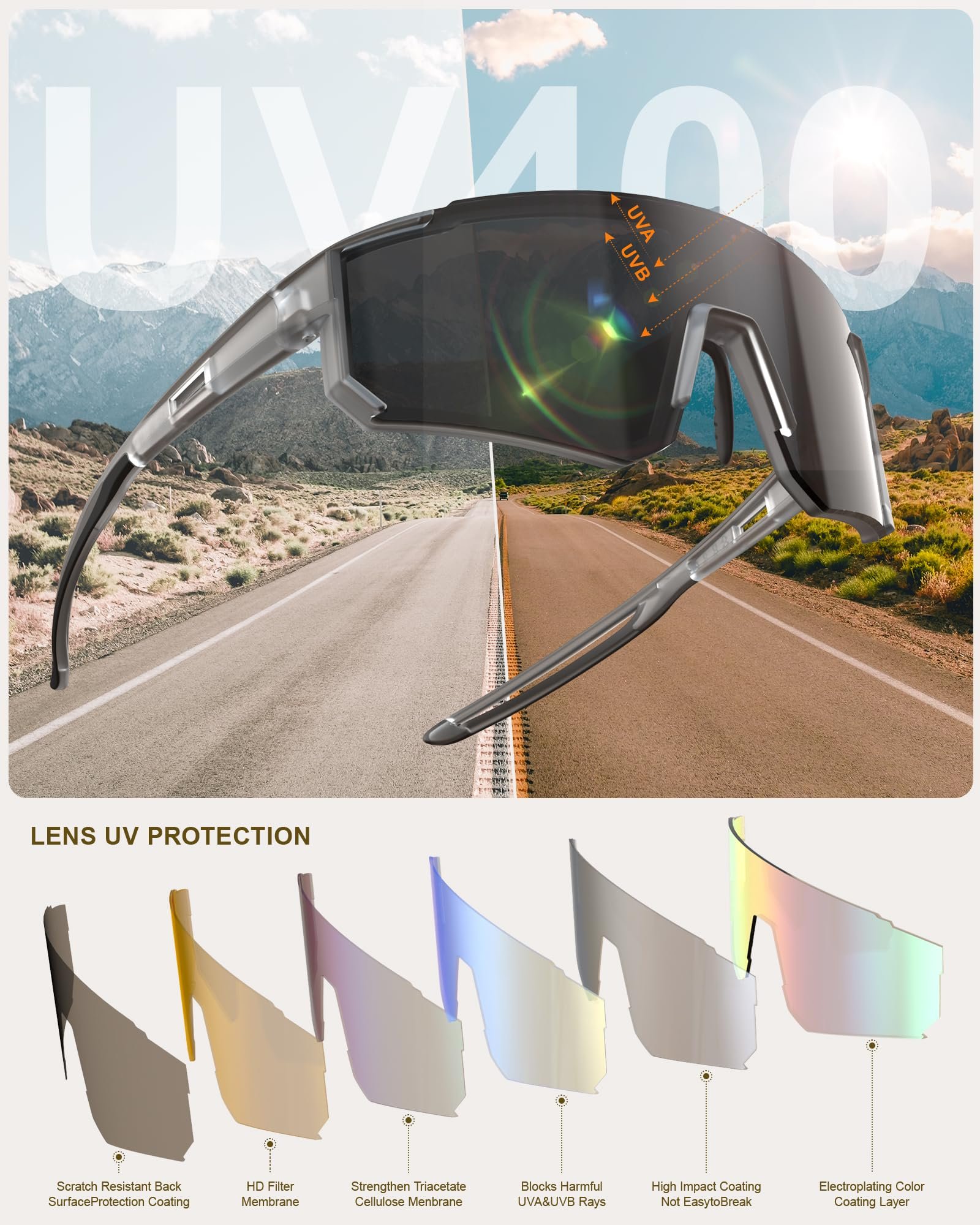 - Sport Sunglasses Men: OUKEMAX mens sunglasses polarized uv are designed to reduce glare with 99% uv400 protective coated lenses, fully blocking uva and uvb rays and protecting your eyes from uv damage.All the way to your outdoor sports. And in addition the one-piece lenses won’t block anything, providing a clear and distraction-free view.