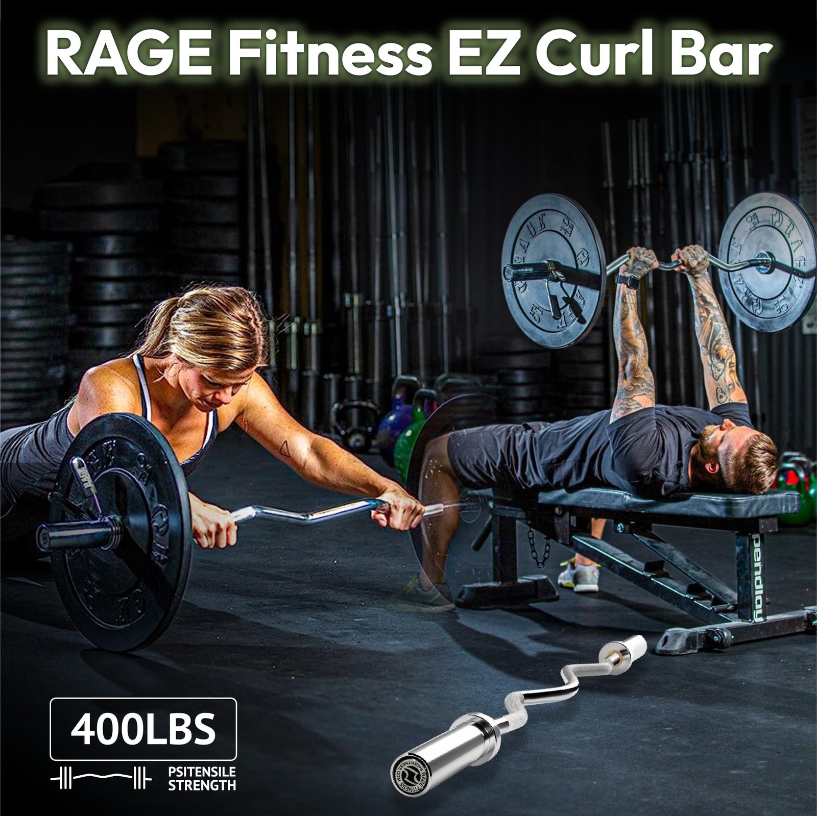 Rage Fitness 47-Inch Olympic EZ Curl Bar (400lb Capacity)