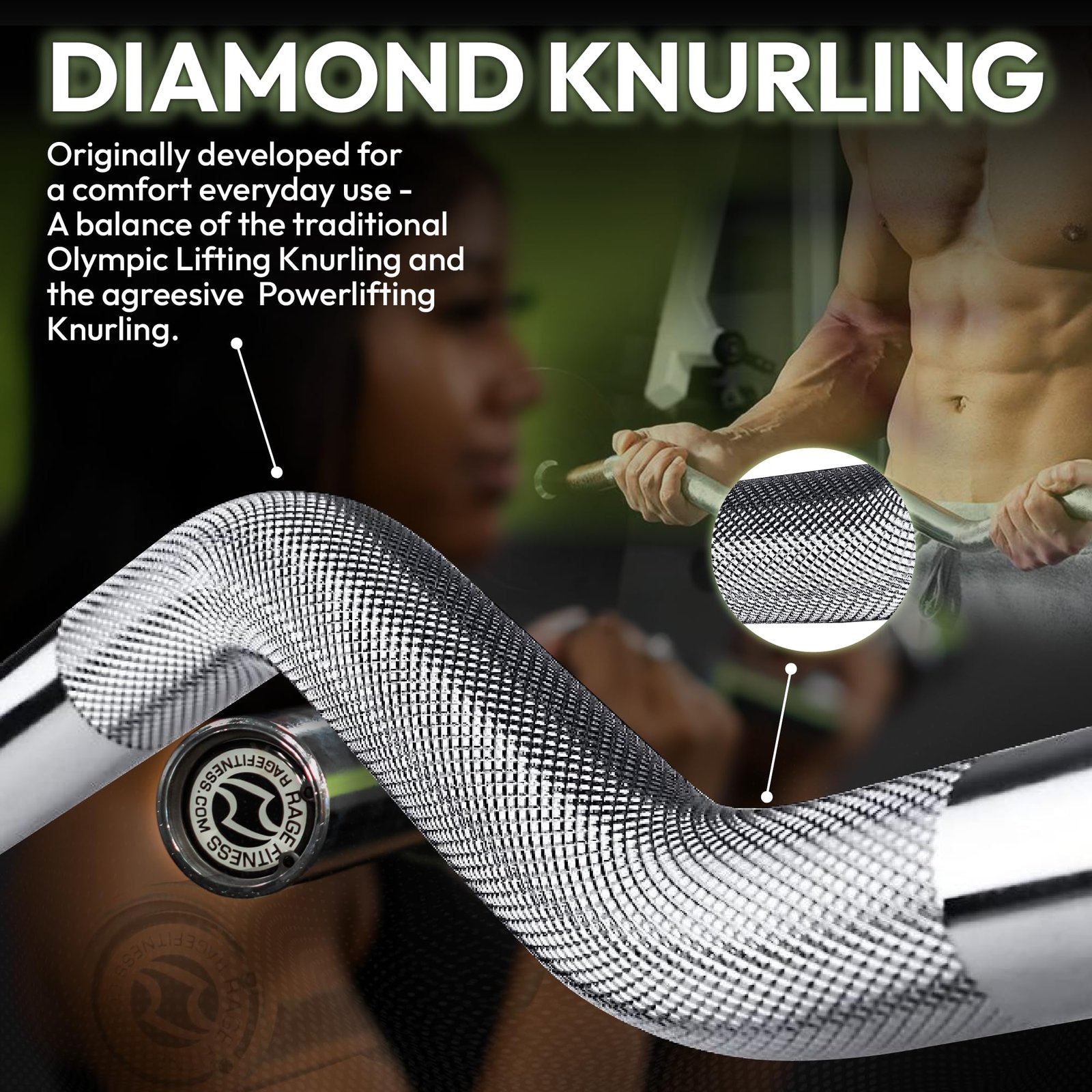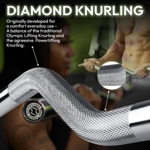 • [ SECURE & COMFORTABLE GRIP ] : Experience a secure grip of a curl barbell with our 25 mm shaft knurling. The unique pattern provides excellent gripping surface without sharpness, reducing tension in the wrist and forearm for enhanced safety and comfort