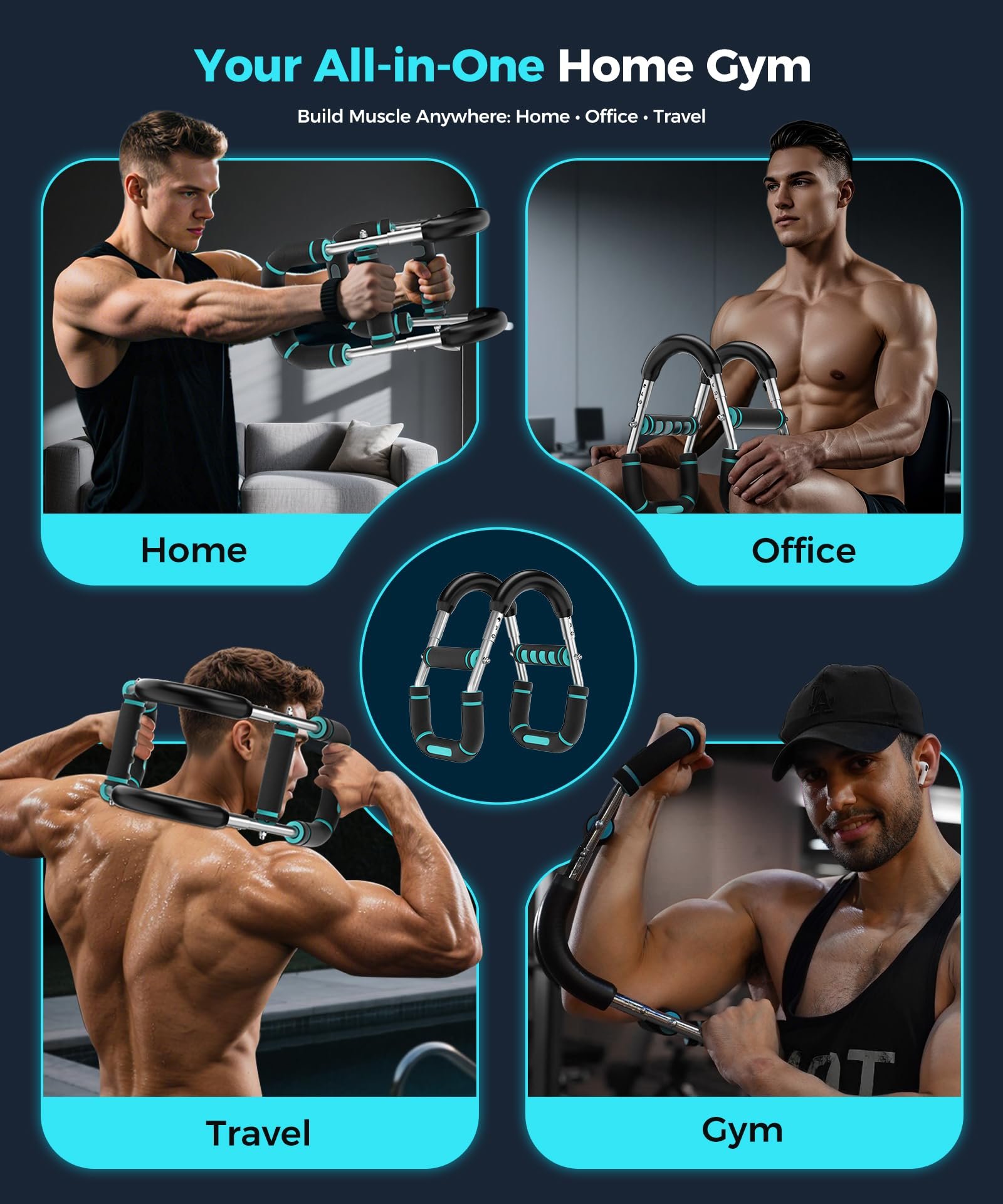 - Full Upper Body Workout: Target chest, arms, shoulders, back, and thigh traing with one at home workout equipment. Replace bulky gym equipment and save space!
