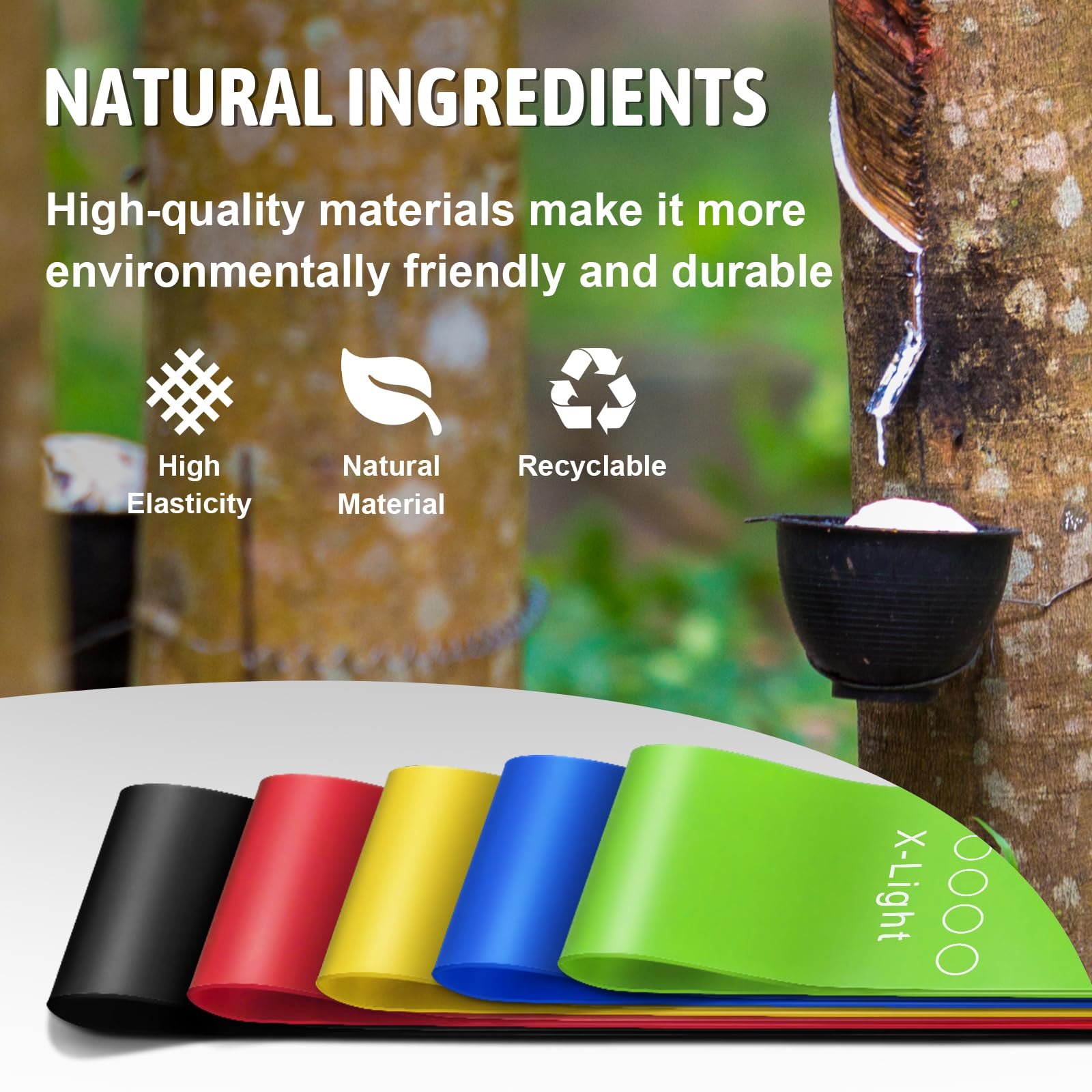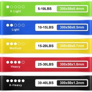 - 5 Level Resistance Band Set:The 5 different colors of the exercise bands different resistance levels and have been optimized and upgraded to increase their thickness compared to the more common resistance bands for legs, with weights ranging from 10lbs to 115lbs when used in combination. Whether you are a beginner or an experienced fitness enthusiast, we have the right weight level for you, which will make this set of fitness band resistance bands your ideal workout companion.