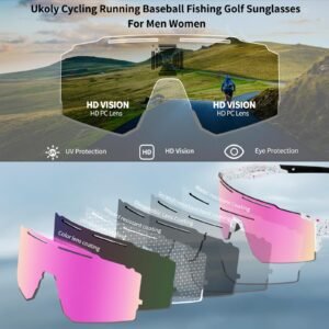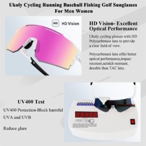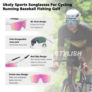 - Flexible and Frame-less Design Frame : The Ukoly newest frame-less design for cycling glasses which make cycling sunglasses becoming more stylish and lightweight. The glasses leg is made of rubber which is flexible and comfortable.