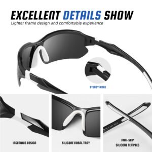 • SUITABLE FOR VARIOUS ACTIVITIES:This polarized sunglasses is suitable for a variety of outdoor activities, such as running, cycling, climbing, skiing, and golfing. While maintaining fashion, it can also protect your eyes from the threat of strong light and wind and sand, providing you with a clear vision