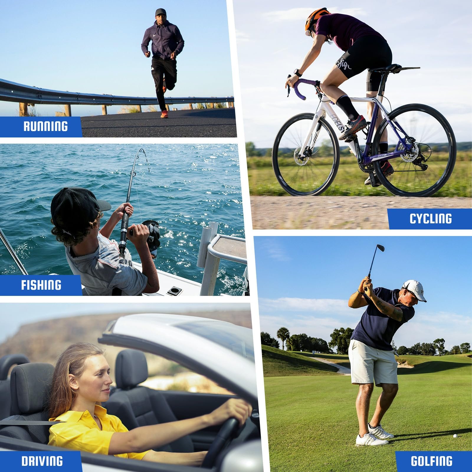 • POLARIZED UV-PROTECTED LENSES:Polarized lenses can reduce reflected light and glare from strong sunlight, especially on reflective surfaces such as water, snow and glass, so as to obtain a clearer view, while effectively blocking 99.9% of harmful light, protecting your eyes and improving eye comfort