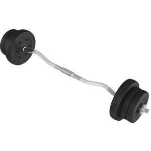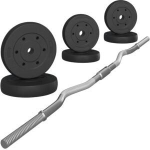 - Barbell with Weights: This barbell weight set comes with four 2.5kg/5.5lb plates, two 5kg/11lb plates, one 10cm/4in curl bar and one pair of star lock collars