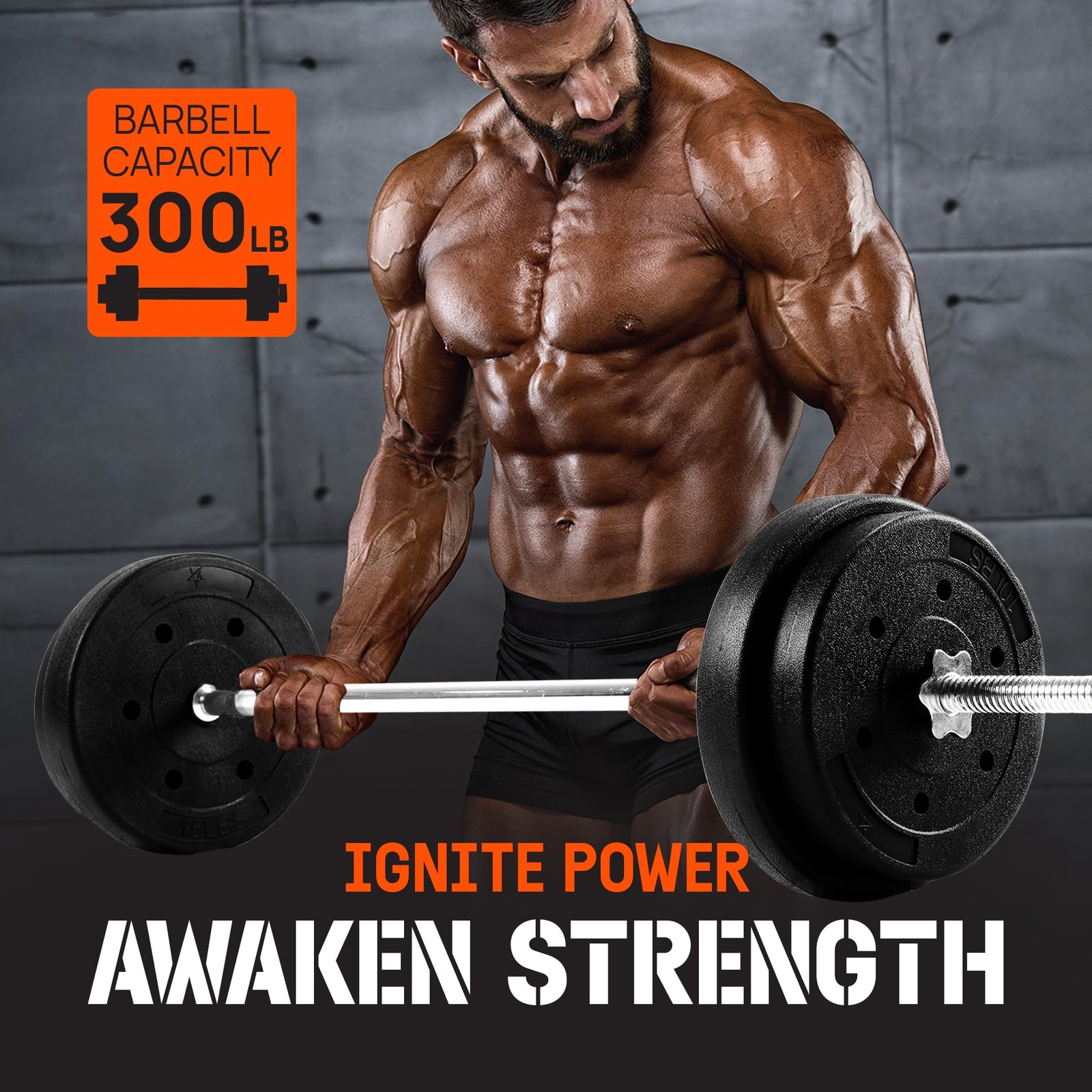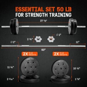 - 2-IN-1 WEIGHT TRAINING SET 50 LB: Weight set with bar features a straight bar & a 50 LB weight plate set including 2×10 LB weights & 2×15 LB weights; Aim for progressive training as the straight barbell can fit other standard 1-inch plates